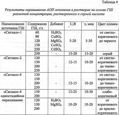 В качестве электролитов окрашивания использовали растворы сульфатов NiS04 + MgS04 или CuS04+MgS04, подкисленные борной или серной кислотой. Растворы, приготовленные на основе гальваношламов,