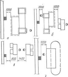 Рис. 6. Схема расстановки верстаков и монтажных столов относительно транспортных устройств: