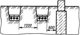 Рис. 1.14. Траншеї, прокладені паралельно один до одного і фундаменту