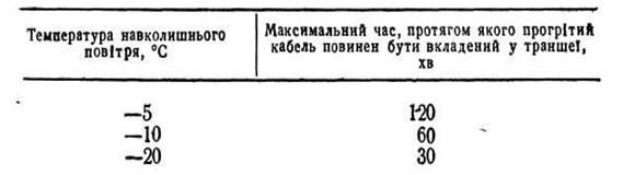 Прогрітий кабель повинен бути прокладений у траншеї протягом певного часу (табл. 3)