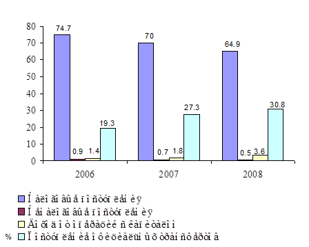 время является чрезмерно большая сфера бюджетного регулирования как следствие низкого уровня собственных доходов местных бюджетов. Причем в средствах бюджетного регулирования преобладают отчисления от общегосударственных налогов и субвенции из республиканского бюджета местным бюджетам. Согласно действующей системе объем изымаемых бюджетных средств устанавливается в абсолютной сумме по каждой области и району. Сам этот механизм напоминает инструмент, использованный при административно-командной системе, так как в нем нет экономического рычага стимулирования местных исполнительных органов в увеличении финансовых ресурсов и эффективном их использовании для решения социальных и экономических проблем в регионах [33].