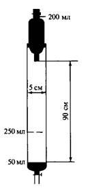 Рис. 2. Ячейка для проведения теста Росса-Майлса: 50 мл жидкости помещают в колонку, пропускают газ и измеряют высоту мгновенно образующейся пены, затем измерение повторяют через 5 или 10 мин
