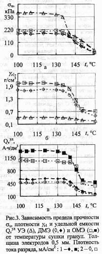 2) зависимости электрических характеристик электродов от параметровпроцесса формования электродов;