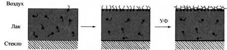 Рис. 10. Модифицирование поверхности пленки лака путем миграции ПАВ к поверхности пленка-воздух, инициируемой ультрафиолетовым облучением