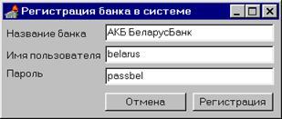 После выполнения регистрации на сервере новый банк-участник может запускать на своей рабочей станции модуль «АРМ оператора банка» и входить в систему указав необходимые имя пользователя и пароль.