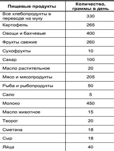 Рекомендуемый набор пищевых продуктов в рационе взрослого человека