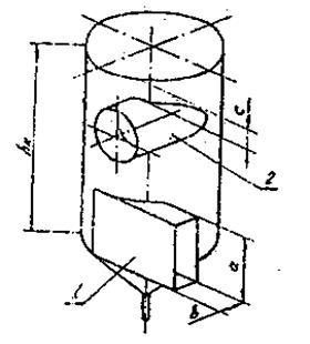 1-входной патрубок; 2-выходной патрубок; - высота каплеуловителя; а, в – габариты входного патрубка; с – расстояние от выходного патрубка до крышки каплеуловителя.