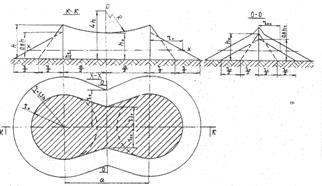 За одержаними даними можна побудувати переріз подвійного конуса – зони захисту. Для цього проведемо прямі лінії з точки Н