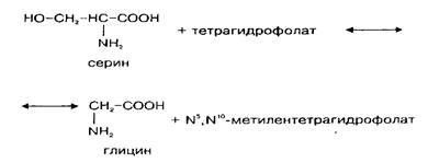 , и от тетрагидрофолата. Расщепление глицина на одноуглеродные фрагменты протекает по схеме: