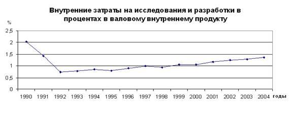 При этом деградация научного потенциала страны продолжается, о чем свидетельствует снижение стоимости основных средств исследований и разработок, и ухудшение их результативности. По сравнению с 1997г. число созданных в 2003г. новых производственных технологий, в России, сократилось в 1,4 раза, а производство принципиально новых по мировым стандартам технологий – в 1,6 раза.