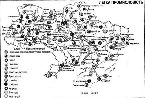Рис. 14. – Розташування основних центрів текстильної промисловості в Україні [10]