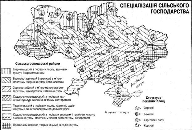 3 Посівні площі сільськогосподарських культур по регіонах (карта, діаграми)