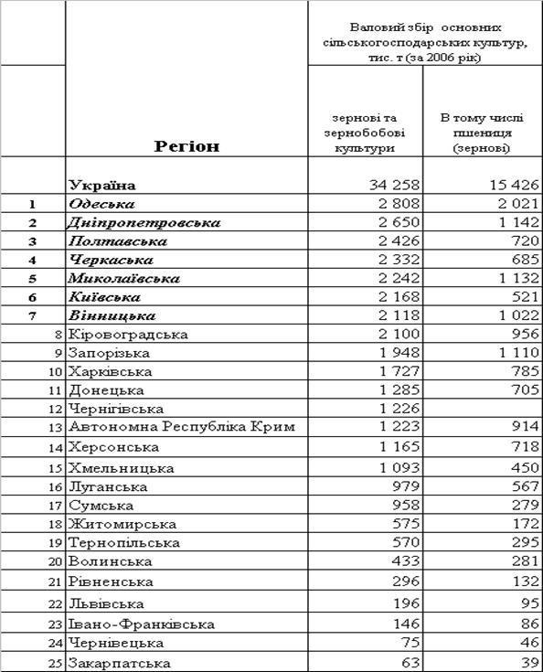 4 Перелік регіонів першої «сімки» по валовому збору: зерна, цукрового буряка, насіння соняшника, картоплі, овочів
