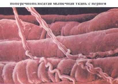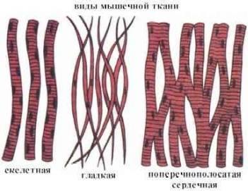 Мышечная ткань. Для осуществления различных движений в организме человека, как и у всех позвоночных животных, имеются 3 вида мышечной ткани: скелетная, сердечная и гладкая. Каждому виду ткани свойствен свой тип видоизмененных клеток - мышечных волокон.