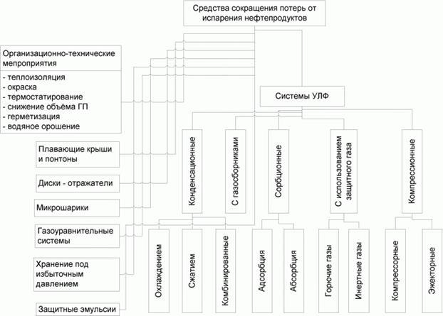 | рис. 1. Средства сокращения потерь от испарения (УЛФ - улавливание лёгких фракций). |