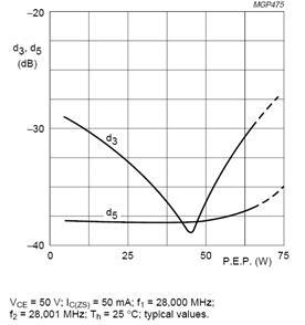 При данном выборе параметров и рабочей точки уровень интермодуляционных искажений третьего и пятого порядков будут соответственно: -33 и -37дБ.