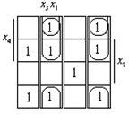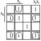 Для заданої функції і для її заперечення знаходимо МДНФ за допомогою діаграми Кароно–Вейча.