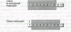 окна». Этот принцип позволяет послать несколько сообщений и только потом ожидать подтверждения. «Скользящее окно» проиллюстрировано на рис. 5.4.