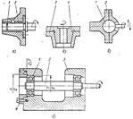 Направляющие вращательного движения с трением скольжения по сферической поверхности (рис. 2, в) применяют для закрепления в них шаровых пят приборов, например, закрепления артиллерийской буссоли в направляющей зажимной чашки.