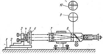 Рис.6. Схема контроля направляющей при помощи автоколлимационной зрительной трубы.