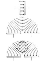 Чутливий елемент безконтактного датчика місткості є конденсатором з обкладаннями, розгорненими в одну площину, як показано на рис.4. Залежно від наявності або відсутності стороннього предмету змінюється середня діелектрична проникність навколишнього обкладання середовища і, отже, місткість конденсатора. Останній служить частотозадающим| елементом автогенератора. Наявний в датчику пороговий пристрій стежить за амплітудою або частотою коливань, при їх зміні приводячи в дію виконавчий вузол.