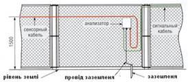 Відома запобіжна система огорожі що містить ряд натягнутих проволікав, когерентне джерело світла, оптичне волокно як чутливий елемент і крайовий пристрій з фотодетектором і формувачем сигналу тривоги. При механічній дії на огорожу оптичне волокно деформується за допомогою спеціальних пристосувань, при цьому інтенсивність когерентного світла, що проходить по волокну, ослабляється, що реєструється крайовим пристроєм як сигнал тривоги.