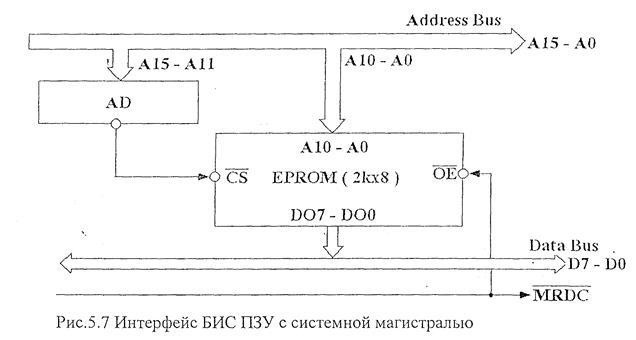 Рисунок 1.5 Интерфейс БИС ПЗУ с системной магистралью