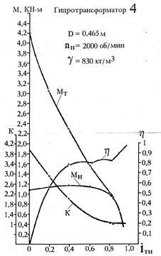 Для каждого выбранного значения передаточного отношения гидротрансформатора определяем значение крутящего момента на валу турбины и число оборотов этого вала, соответствующее найденному значению крутящего момента. Расчет проводится по формулам