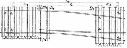 стандартної довжини, а стики в зоні сполучної частини на зовнішніх і внутрішніх нитках находяться в одному створі. За цією методикою визначено довжини рейок сполучної частини при проектуванні стрілочних переводів останніх років: