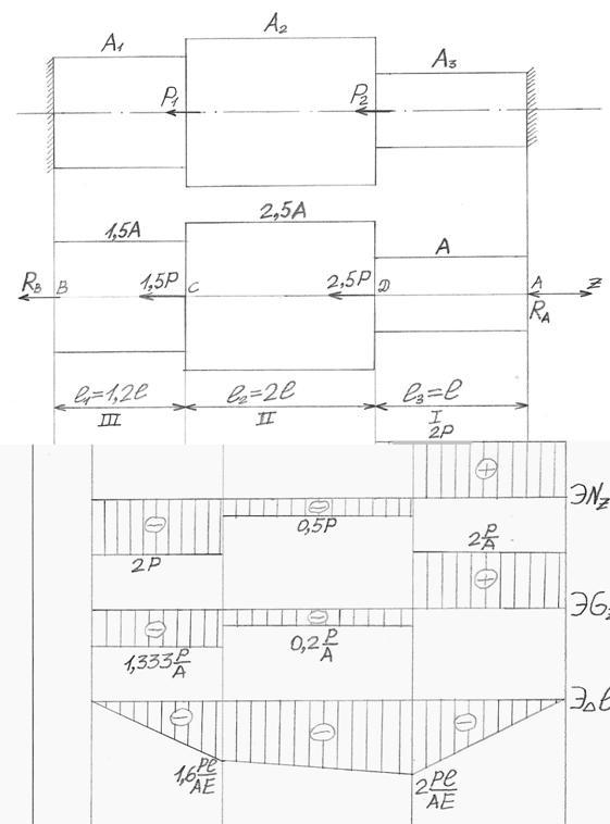 4. Определяем нормальные напряжения на каждом участке.
