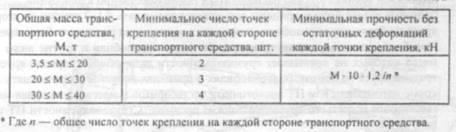 с каждой стороны транспортного средства должно быть не менее двух и не более шести точек крепления в зависимости от условий размещения и крепления.