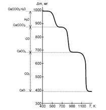 На основании кривой ТГ можно судить о том, каким образом изменялась при нагревании масса пробы, например, при каких температурах и на сколько миллиграммов менялась масса пробы осадка ацетата кальция, а следовательно, при каких температурах происходили химические превращения Ca(СОО)2