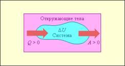 Рисунок 1 - Обмен энергией между термодинамической системой и окружающими телами в результате теплообмена и совершаемой работы