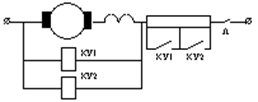 Напряжение включения аппаратов, подключенных параллельно якорю двигателя, пропорционально ЭДС, а следовательно, скорости ДПТ, при достижении определенного значения которой происходит закорачивание очередной части пусковых резисторов. Эти схемы получили малое распространение и применяются только для простых схем (2- 3 ступени) из-за нестабильности настройки (зависимость от напряжения сети, нагрузки и др.).