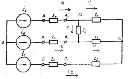 1. Преобразуем треугольник сопротивлений Z1, Z2 и Z5 в звезду