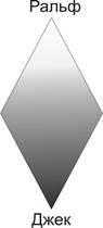 Полюс позитивного, конструктивного відношення до життя виявляв собою Ральф. Полюс негативної, деструктивної життєвої позиції виявляв собою Джек. Стійких прихильників Ральфа було небагато, (на діаграмі вершина ромба), стійких прихильників Джека було також мало, (на діаграмі нижня частина ромба). Основна маса дітей не була визначена у своєму виборі (середня частина ромба) й за їх вибір розвгорнулася боротьба між групою Ральф і групою Джека. Група Джека перестала виконувати розпорядження Ральфа й ставала усе більш і більш агресивною стосовно групи Ральфа. «Джеківці» нав'язували свої умови життя на острові, залякуючи менших, тому більш слабких дітей із групи Ральфа й переманювали ральфовців на свою сторону, обіцяючи їм веселою, без усяких обов'язків, життя. Більш стійких прихильників Ральфа просто знищили фізично.
