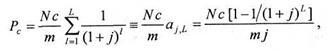 Если выплата купонов по облигации производится несколько раз в год (т=4 – ежеквартально, т=2 – один раз в полгода), то оценка ее курса проводится совершенно аналогично случаю ежегодных выплат. Обычно основой для определения величины купонных выплат является годовая купонная ставка. Если купоны выплачиваются т раз в год, то величина одной купонной выплаты равна cN/m. Текущая стоимость номинала, выплачиваемого в момент погашения, как и ранее, определяется формулой (3), а текущая стоимость купонных выплат на момент времени непосредственно после очередной купонной выплаты в соответствии с (1):