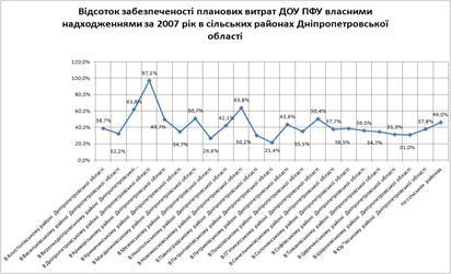 Рис.В.8. Порівняльна таблиця забезпеченості коштами в Пенсійному Фонді України у Дніпропетровській області у 2007 році (сільські райони області)