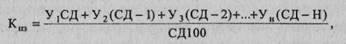 где У - удельный вес затрат соответствующего месяца или другого периода, через который запускается в строительство каждый следующий дом, в общей стоимости дома или комплекта; СД - число домов, находящихся одновременно в незавершенном производстве, по которым произведены затраты первого месяца (периода) строительства; СД-1, СД-2,..., СД-Н - количество домов, по которым произведены затраты первого, второго и т.д. месяца (периода).