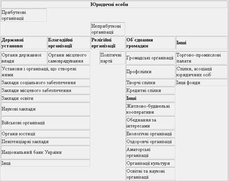 Усі юридичні особи щодо отримання прибутку можна розділити на дві великі групи незалежно від форми власності: прибуткові організації, або суб’єкти підприємницької діяльності, та неприбуткові організації. Детальний перелік останніх наведено в п.7.11.1 ЗУ «Про оподаткування прибутку підприємств». До них належать: