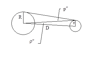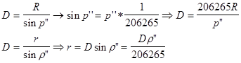p² - параллакс, r² - угловой радиус, R - радиус Земли, r - радиус светила.