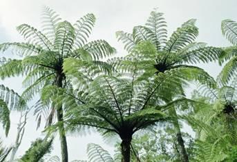 На востоке — влажно-тропическими вечнозелёными и летнезелёными лесами. Там по Атлантическому побережью протянулись влажные тропические леса, которые в прибрежной части в значительной степени сведены под плантации тропических культур. Для восточных наветренных склонов и высокогорных плато Бразильского плоскогорья характерна выраженная высотная поясность. По склонам распространены высокотравные вечнозеленые леса, сходные по облику и видовому составу с амазонской сельвой. Выше они сменяются древовидными папоротниками (Рис. 9, 10) и бамбуками, а на высоте 1800 м появляются листопадные деревья и хвойная араукария. Выше 2200—2400 м начинаются горные луга, сменяющиеся торфяниками, мхами и лишайниками