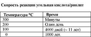 Эти эффекты определены количественно для реакций угольной кислоты с риолитами. Авторы определили, что степень реактивоспособности самая наибольшая при 150-200°С. Скорость распространения гидротермальных изменений при 200°С была в 27 раз выше, чем при 350°С. При более низких температурах скорость реакции очень мала, чтобы быть эффективной.