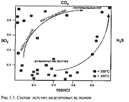 S (см. Giggenbach, 1992, по каким причинам; рис 1.3). Однако имеются другие очень важные изменения химического состава гидротерм, которые будут обсуждаться позже более детально.