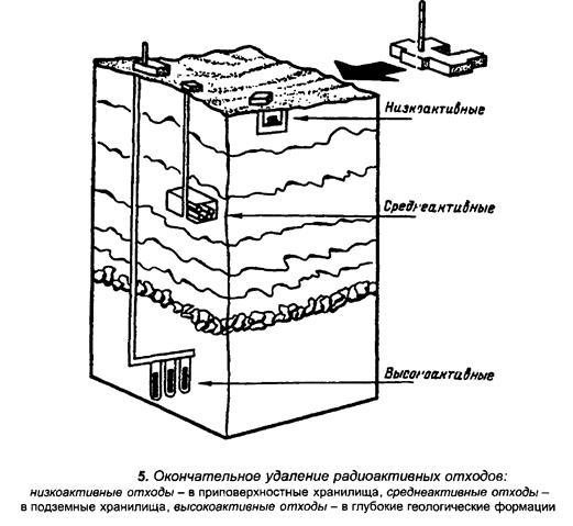 Таким образом, особое внимание должно уделяться сбору, удалению и захоронению твердых и высокоактивных жидких отходов, которые могут вызвать загрязнение окружающей природной среды.