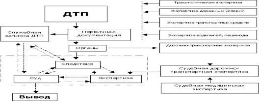 Рисунок 1 - «Взаимодействие звеньев систем «следствие-экспертиза –суд» в исследовании механизма ДТП».