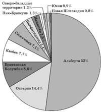 Рис. 2. Доля отдельных провинций Канады в продукции горнодобывающей промышленности страны