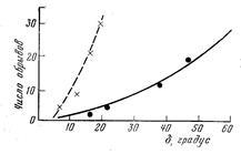 Рис. 38. Зависимость аварийности бурильных труб от величины полного угла δ