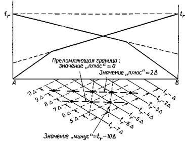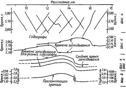 распространения волн вдоль преломляющих границ по годографам головных и слабо рефрагированных волн и по годографам рефрагированных волн с введением поправки за рефракцию;