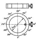 В каждой точке заданный зенитный угол измеряют не менее двух раз при приближении к заданному зенитному углу со стороны больших и меньших значений, при этом при установке прибора в поверочную установку корпус скважинного прибора инклинометра необходимо развернуть на 90° вокруг своей оси относительно метки на вспомогательном кольце (см. рис. 8), соответствующей одному из максимальных значений систематической составляющей погрешности измерения азимута. Выполнив два измерения зенитного угла, корпус прибора разворачивают относительно своей оси на 180° и измерения повторяют.